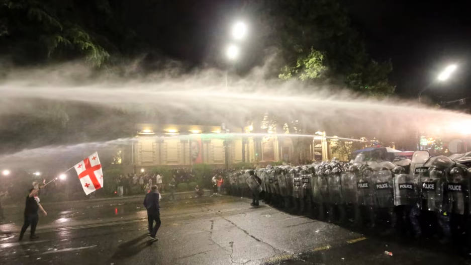 Të martën në mbrëmje forcat gjeorgjiane të sigurisë përdorën ujë, gaz lotsjellës dhe granata trullosëse kundër protestuesve jashtë parlamentit, duke e përshkallëzuar ashpër goditjen ndaj atyre që protestojnë kundër ligjit. Opozita dhe vendet perëndimore e kanë kritikuar projekligjin përqasjen autoritare që paraqet si dhe e kanë cilësuar si të frymëzuar nga Rusia.