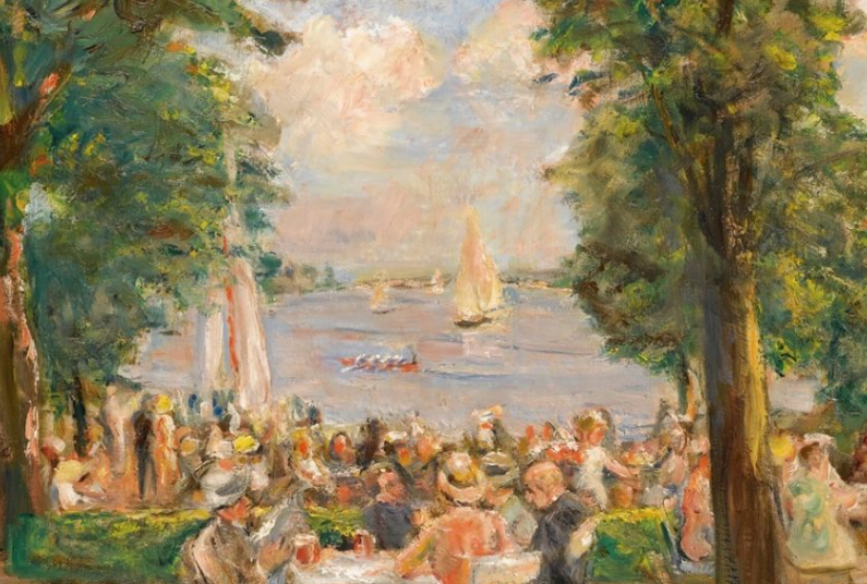 Vepra titullohet “Kopshti i birrës pranë Wannsee (Shtëpia në Liqen)” dhe përshkruan zonën e jashtme të një restoranti në brigjet e liqenit afër Berlinit me varkat me vela në sfond.