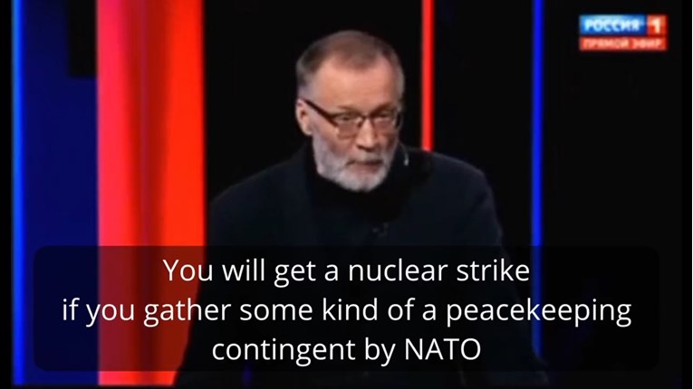 Sergey Mikeyev, i cili e quan veten analist politik, mbajti një fjalim të tërbuar në kanalin propagandistik shtetëror rus, Kanal 1, ku edhe kërcenoi Europën me armë bërthamorë.