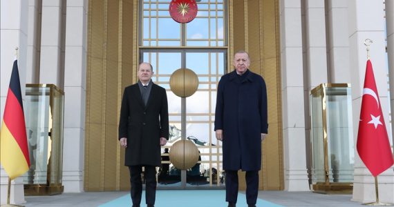Pas pozicionimit të Erdoğan dhe Scholz në foltoren ceremoniale u kryen 21 të shtëna me top dhe u intonuan himnet kombëtare të të dy vendeve. Presidenti i Turqisë, Recep Tayyip Erdoğan, ka pritur me një ceremoni zyrtare kancelarin e Gjermanisë, Olaf Scholz i cili ndodhet në Turqi për një vizitë zyrtare. Automjeti i kancelarit Scholz … Continue reading Presidenti Erdoğan pret me një ceremoni zyrtare kancelarin gjerman, Olaf Scholz