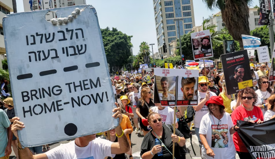 “Jam këtu sot pasi qeveria ime nuk mundet t’i kthejë pengjet. Është e thjeshtë. Nuk munden, nuk duan. Pas nëntë muajsh luftimesh, nëntë muaj protestash duke i kërkuar qeverisë t’i kthejë në atdhe, ata thjesht nuk dëshirojnë ta bëjnë këtë. Prandaj ne sot e paralizuam vendin për të kthyer pengjet në atdhe dhe për të shkuar drejt zgjedhjeve në mënyrë që qeveria jonë ta rindërtojë vendin”, thotë protestuesi Tomer Lev.