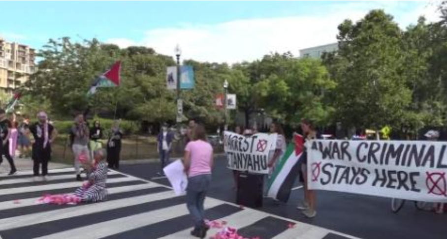 Me qindra protestues pro Palestinës u mblodhën pranë hotelit ku është duke qëndruar kryeministri i Izraelit, Benjamin Netanyahu, në Uashington.
