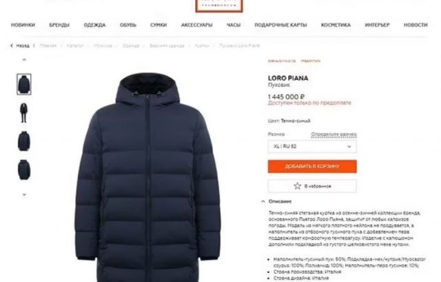 69 vjeçari kishte zgjedhur një xhaketa Loro Piana me vlerën e 1.5 milionë rublave ruse, ekuivalente me 11 mijë euro.