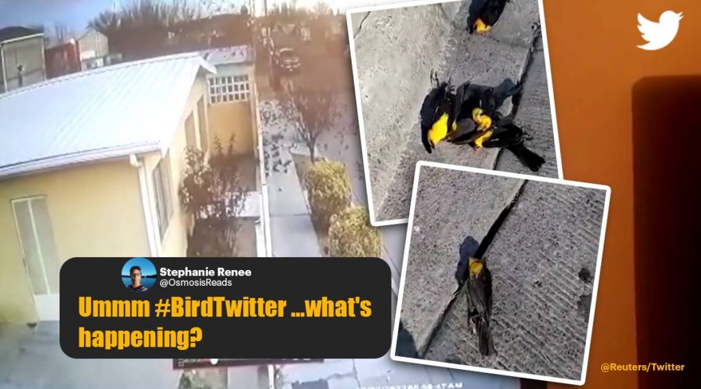 Qindra zogj të zinj me kokë të verdhë janë filmuar duke rënë nga qielli, disa prej tyre ngordhën, në rrethana misterioze në qytetin verior meksikan të Cuauhtémoc.