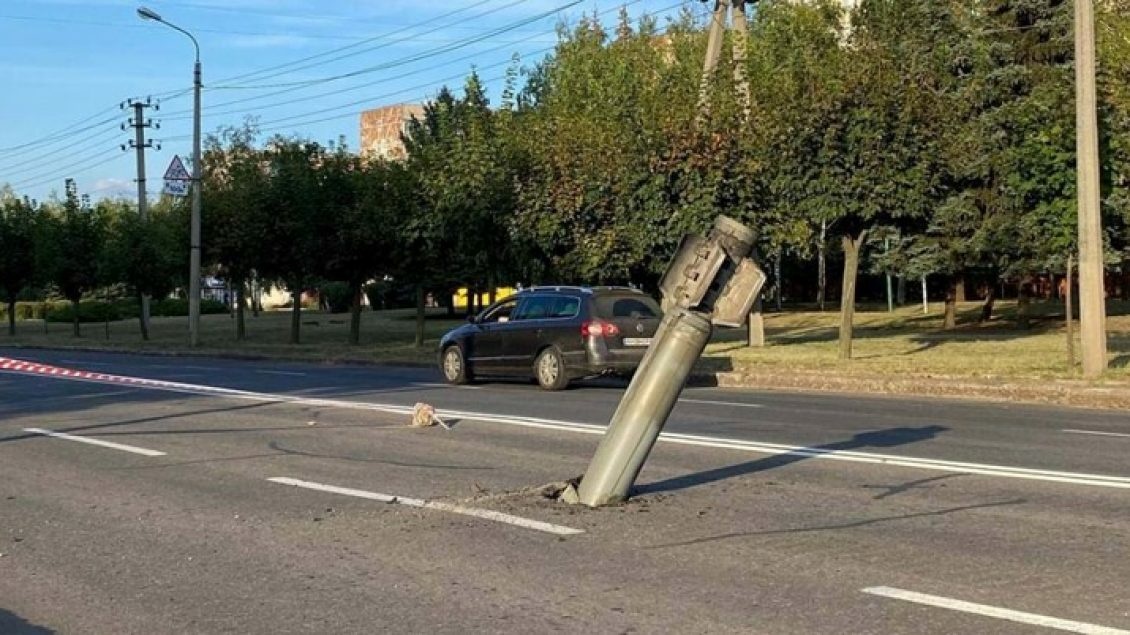 Fotografi shfaq raketën e pashpërthyer ruse që është ngulur në rrugën e asfaltuar.