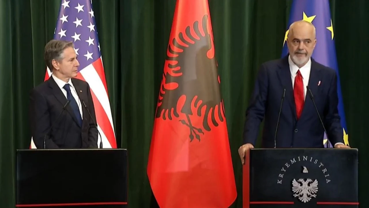 Kryeministri i Shqipërisë, Edi Rama gjatë fjalës së tij me Sekretarin amerikan të Shtetit, Antony Blinken, foli për situatën politike në Kosovë dhe dialogun me Serbinë.