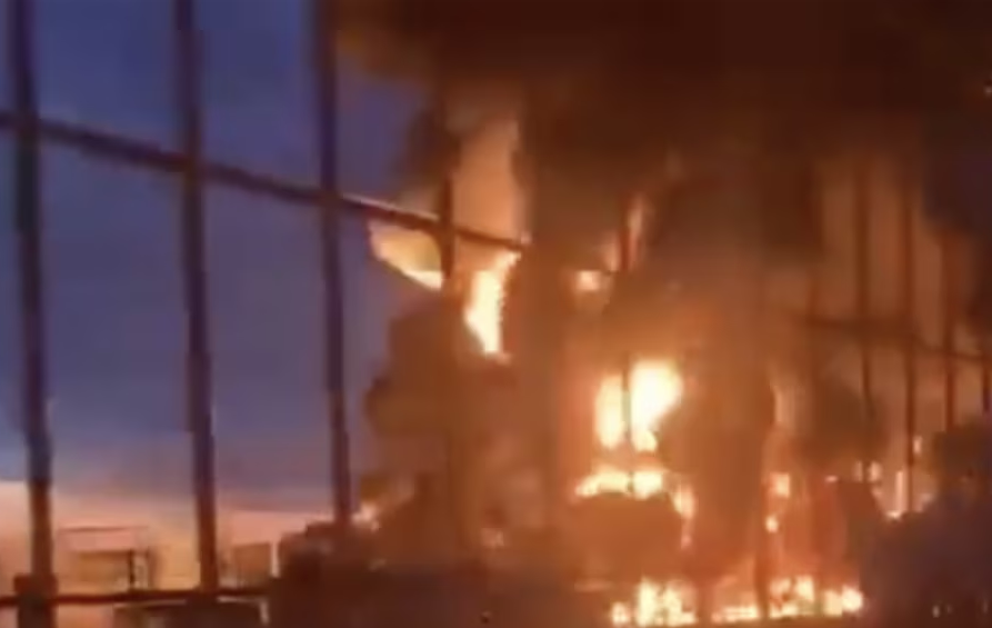 Kanali YE Astra në Telegram e publikoi një video të xhiruar nga dëshmitarët, e cila shfaq një zjarr të madh në një rafineri.