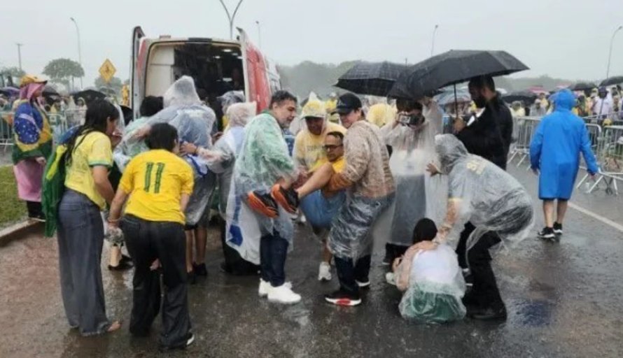 Rreth nëntëdhjetë persona u lënduan kur rrufeja ra pranë një tubimi në mbështetje të ish-presidentit të burgosur brazilian Jair Bolsonaro në kryeqytetin e Brazilit të dielën, thanë zyrtarët e zjarrfikësve.