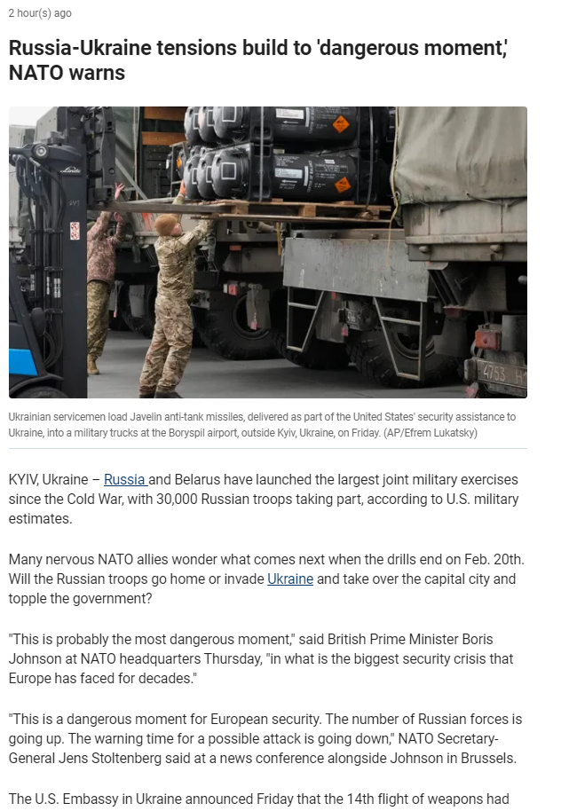 Pas një takimi virtual me Presidentin e SHBA-së, Joe Biden, dhe aleatët kryesorë, Sekretari i Përgjithshëm i Organizatës së Traktatit të Atlantikut të Veriut, Jens Stoltenberg tha se “rreziku i konfliktit në Evropë është real” në një deklaratë.