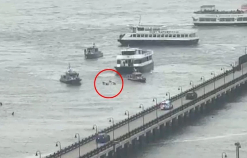 Pamjet filmike të publikuara në rrjet tregojnë momentin dramatik kur helikopteri bie me kokë poshtë nga lartësia dhe përfundon në ujërat e lumit Hudson, duke shkaktuar një shpërthim uji.
