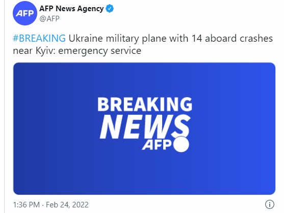 Agjencia e lajmeve AFP raporton se një aeroplan ushtarak ukrainas me 14 pasagjerë është rrëzuar afër kryeqytetit Kiev, transmeton arbresh.info.