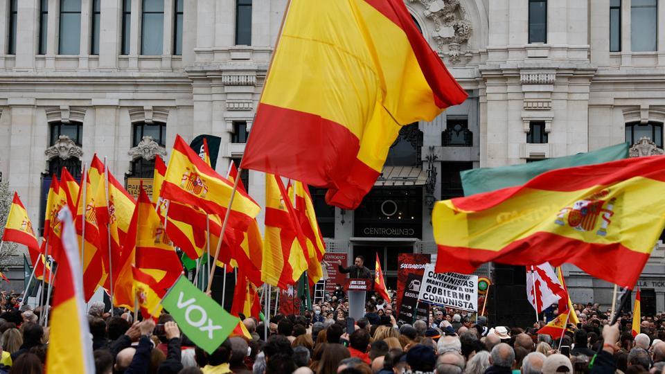 Jashtë bashkisë së Madridit, një turmë prej disa mijëra vetësh u mblodh, duke valëvitur qindra flamuj spanjollë dhe duke brohoritur parulla të zemëruara duke bërë thirrje për dorëheqjen e kryeministrit socialist Pedro Sanchez.