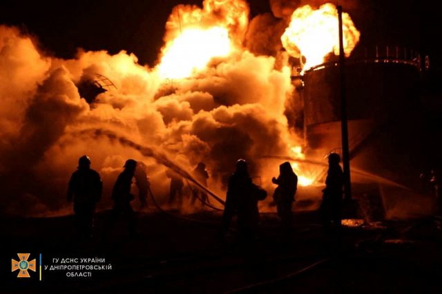 Guvernatori i rajonit e përshkroi situatën si “alarmante dhe të vështirë” dhe konfirmoi se depoja e naftës me karburant ishte shkatërruar.