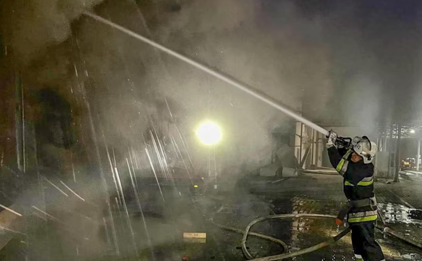 Si pasojë u dëmtua një magazinë, u dogjën me dhjetëra kamionë dhe dy persona u plagosën.