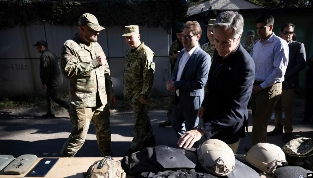 Sekretari Blinken u takua të enjten me zyrtarë ushtarakë ukrainas duke vëzhguar pajisjet ushtarake të cilat janë dhuruar nga Uashingtoni.