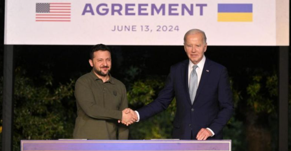 Presidenti amerikan, Joe Biden dhe presidenti i Ukrainës, Volodymyr Zelensky kanë nënshkruan një pakt jetik 10-vjeçar të sigurisë në samitin e G7.