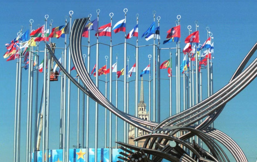 Flamujt kombëtarë të 48 shteteve evropiane kanë qenë duke u valëvitur në shesh, në mars të vitit 2023, kur janë hequr pa ndonjë sqarim.