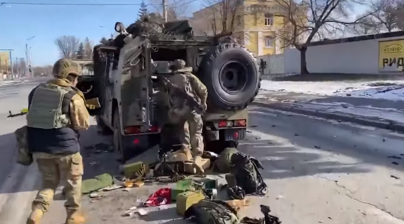 Forcat Tokësore të Ukrainës thonë se e kanë shkatërruar një kolonë të automjeteve të atyre që vetëquhen “Tigrat rus”.