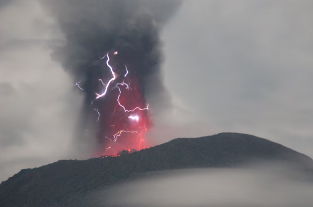 Mali Ibu shpërtheu mbrëmjen e së shtunës, duke dërguar hi 4 km (2.5 milje) të lartë, teksa rripa rrufeje vjollce u ndezën rreth kraterit të tij, sipas informacionit dhe imazheve të shpërndara nga agjencia e vullkanologjisë indoneziane, shkruan Reuters transmeton Arbresh.info.