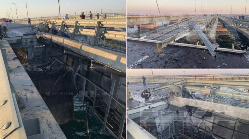 ? BREAKING: At least one bridge span has collapsed on the Kerch Bridge after an apparent missile strike by Ukraine. All traffic stopped. 5am currently. The bridge connects occupied Crimea and Russia. pic.twitter.com/OL9q0cfycI