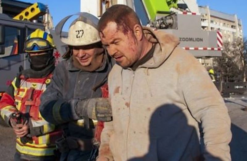 Është shpëtuar një burrë nga rrënojat e Kharkivit pas granatimeve.