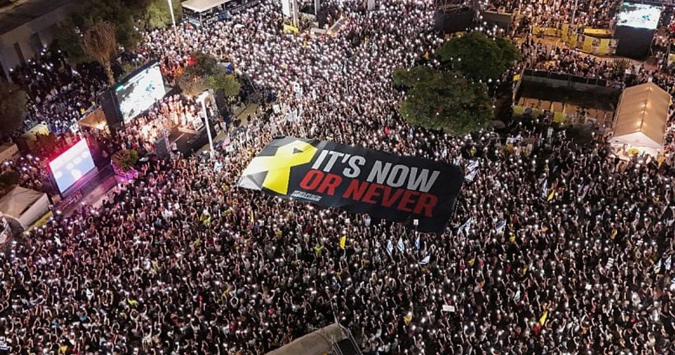 Dhjetëra mijëra izraelitë po protestojnë masivisht në Tel Aviv, për të shënuar dy vjetorin e sulmit të 7 tetorit – dhe për të ushtruar presion mbi Benjamin Netanyahun që të mbyllë marrëveshjen në Gaza dhe të kthejë të gjithë pengjet.