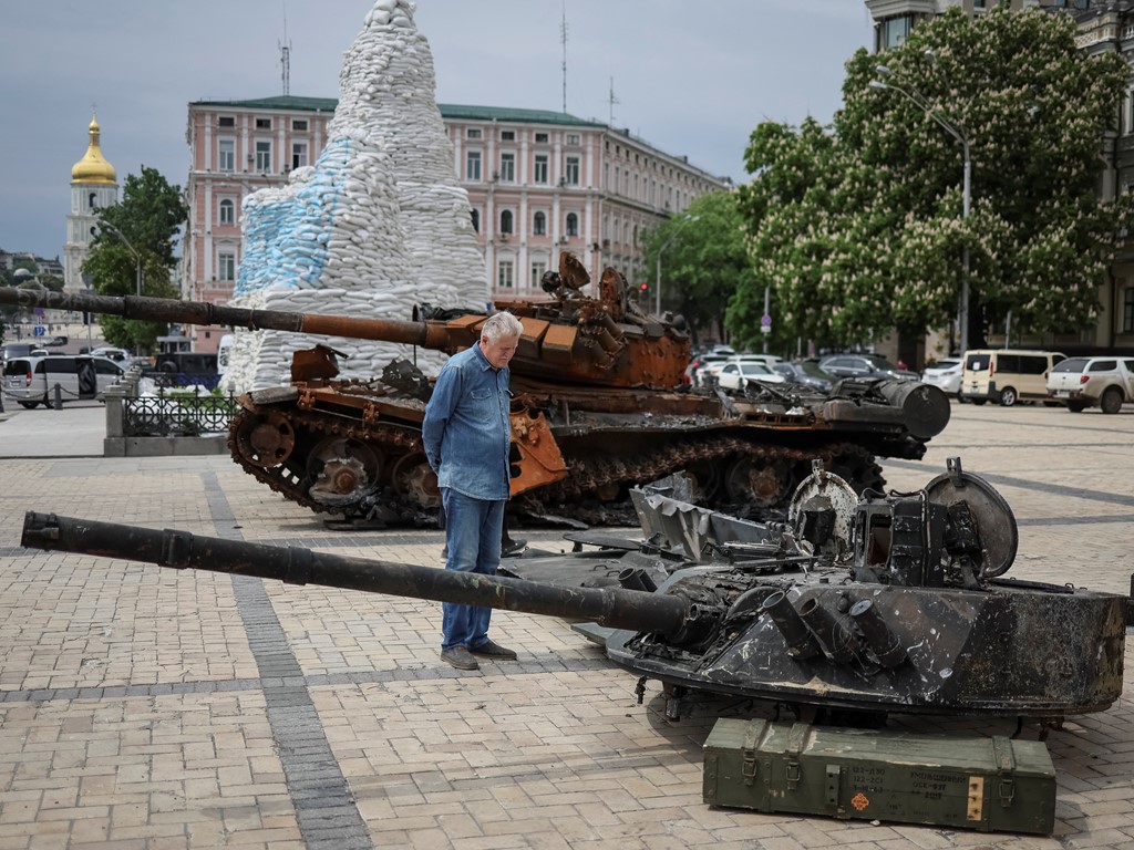Tanket e shkatërruara ushtarake ruse po shfaqen në qendër të kryeqytetit të Ukrainës, Kiev.