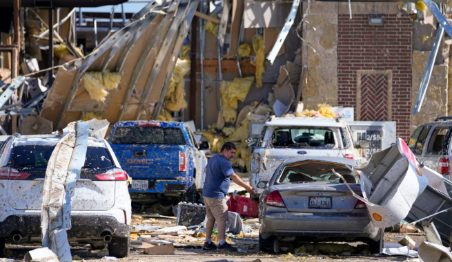 Stuhitë e fuqishme shkaktuan vdekjen e të paktën 14 njerëzve të dielën në Teksas, Oklahoma dhe Arkansas, duke shkatërruar shtëpi dhe një stacion kamionësh, ku po strehoheshin dhjetëra vetë.