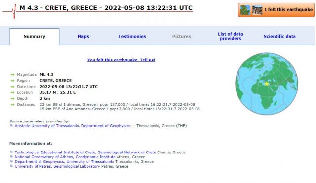 Kujtojmë që prej disa muajsh Greqia dhe ishujt përreth kanë qenë nën goditjen e vazhdueshme të tërmeteve, por që fatmirësisht nuk kanë patur pasoja në njerëz.