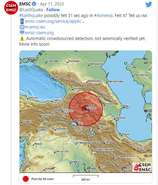 Shërbimi Sizmik Armen raporton se tërmeti ka ndodhur në afërsi të kufirit turko-iranian, 7 kilometra në verilindje të qytetit të Maku, raporton Radio Public Armenia. Të njëjtën gjë e ka bërë të ditur edhe EMSC.