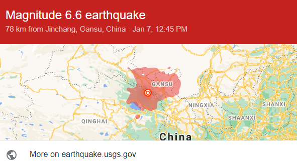 Tërmeti me magnitudë 6.9 goditi në orën 1:45 të mëngjesit në qarkun Autonome Hui Menyuan në provincën Qinghai në një thellësi prej 10 km. Epiqendra ishte rreth 140 km në veriperëndim të kryeqytetit të provincës, Xining, në një zonë malore që është 3,659 metra mbi nivelin e detit.