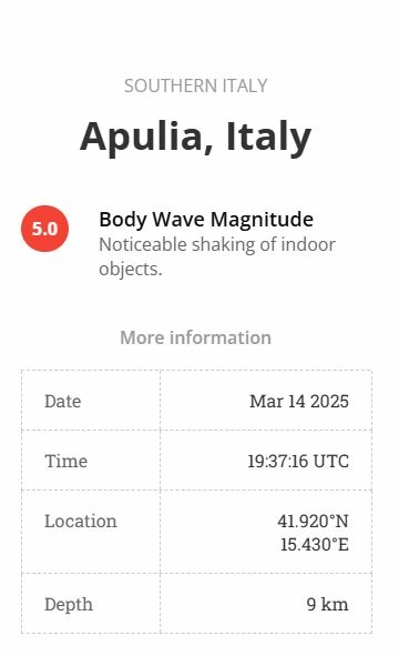 Një tërmet me magnitudë 5 të shkallës Rihter është regjistruar në Itali.