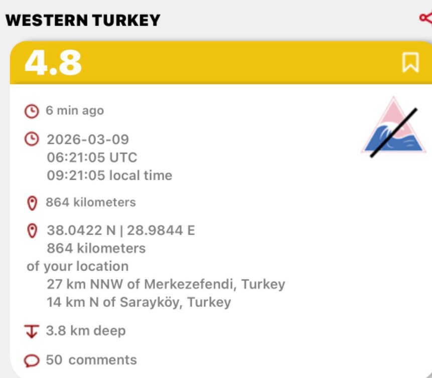 Një tërmet me magnitudë 4.8 të shkallës rihter është regjistruar mëngjesin e sotëm pranë qytetit Merkezefendi në Turkey.