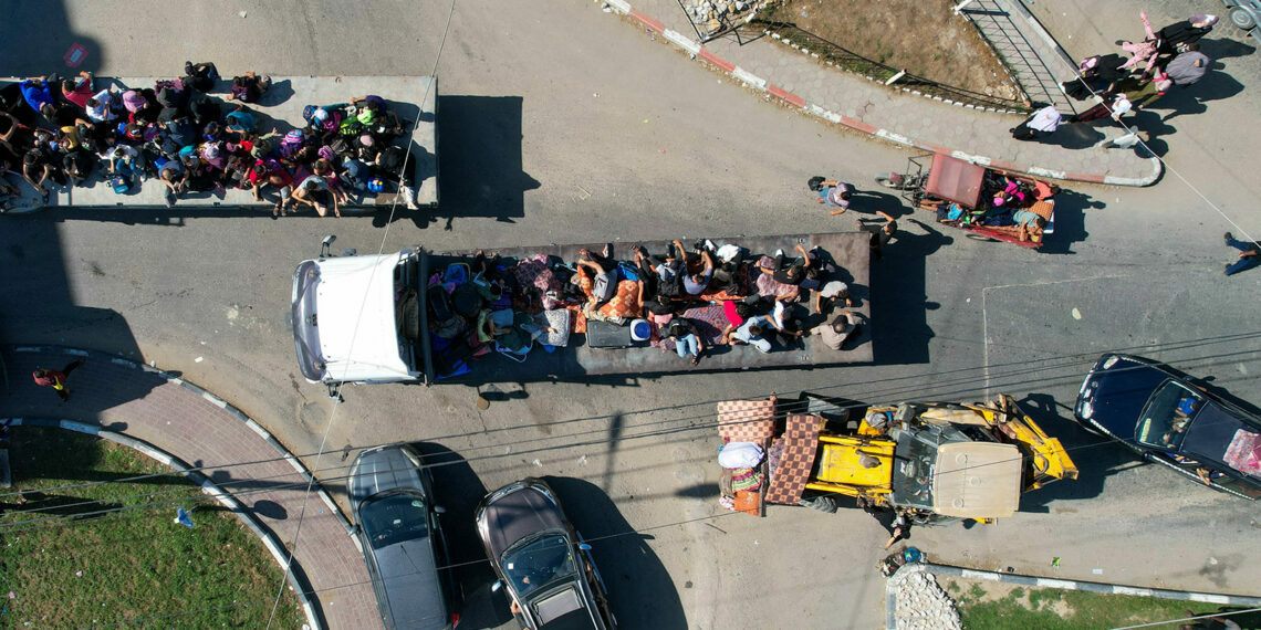 Palestinians fleeing from northern Gaza to the south after the Israeli army issued an unprecedented evacuation warning to a population of over 1 million people in northern Gaza and Gaza City to seek refuge in the south ahead of a possible Israeli ground invasion, Friday, Oct. 13, 2023. (AP Photo/Hatem Moussa)