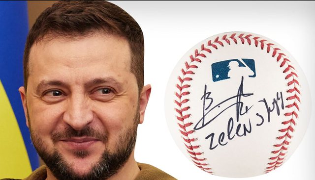 Një top bejsbolli i nënshkruar nga presidenti ukrainas Volodymyr Zelenskyy është shitur në ankand për më shumë se 50,000 dollarë.