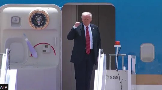 Presidenti Donald Trump tanimë ka hipur në Air Force One në Aeroportin Ndërkombëtar King Khalid në kryeqytetin saudit Riad pas përfundimit të vizitës atje.