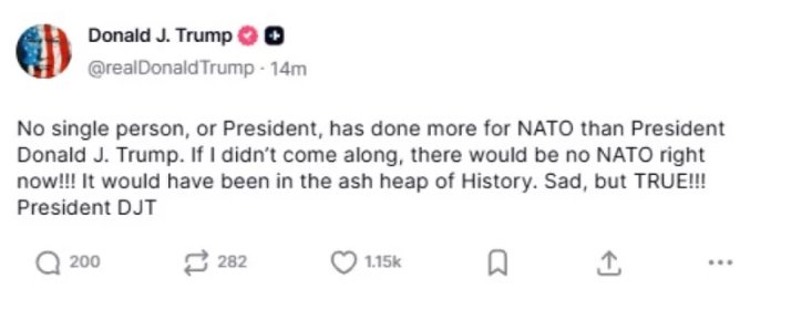 “Asnjë person, asnjë president, nuk ka bërë më shumë për NATO-n”, shkroi presidenti në Truth Social.