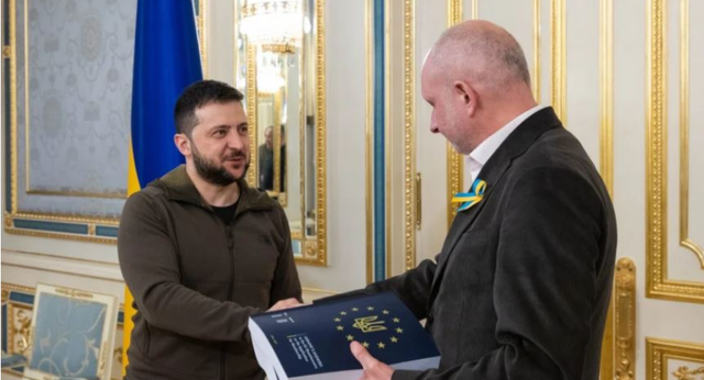 Zelesnky ia ka dorëzuar formularin kreut të delegacionit të BE-së në Ukrainë, Mati Masikas.