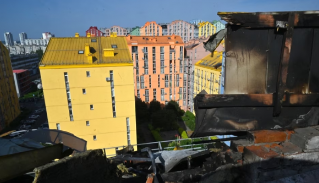 Zjarri ka rënë edhe në një ndërtesë banimi si pasojë e një sulmi me dronë, por nuk ka pasur viktima.
