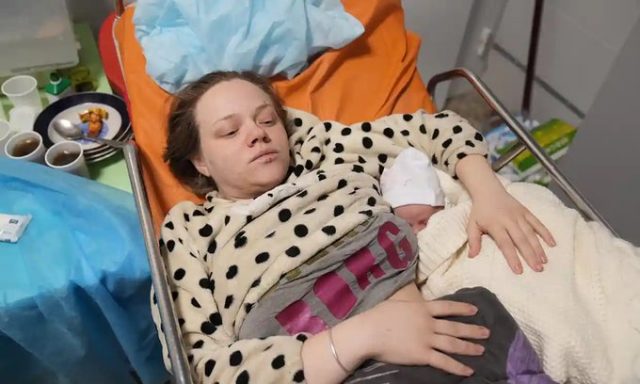 Mariana Vishegirskaya, e veshur me të njëjtat pizhame me pika me të cilat u fotografua teksa po zbriste shkallët e spitalit të shkatërruar, u fotografua të premten nga Associated Press e shtrirë në një shtrat spitali duke mbajtur vajzën e saj të porsalindur, Veronika, transmetoin portal arbresh.info