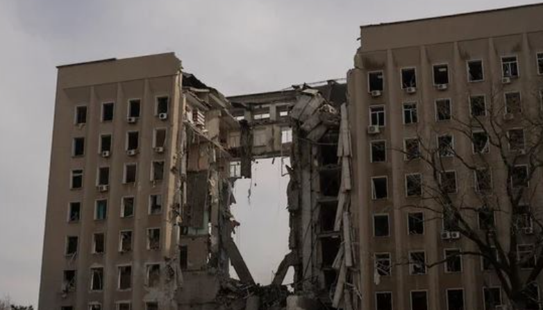 Sulmi rus shkatërroi gjysmën e ndërtesës, tha guvernatori Vitalii Kim.