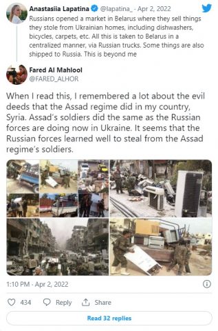 “Duket se forcat ruse kanë mësuar mirë të vjedhin nga ushtarët e regjimit të Asadit”, tha Al Mahlol.
