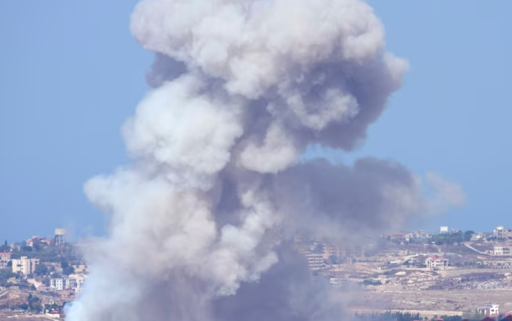 Shtëllunga tymi u ngritën mbi kodra në kufirin midis Izraelit dhe Libanit.