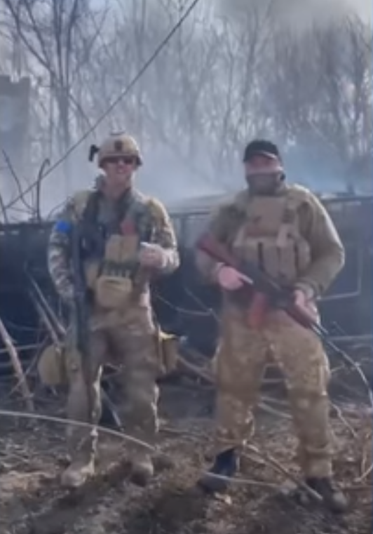 Dy videoklipe me luftëtarë amerikanë u shfaqën në Twitter të enjten: njëra tregonte një amerikan me pajisje luftarake duke pozuar përpara mbetjeve të djegura të një tanku rus. Jashtë kamerës, një ukrainas bërtet “Mirë se erdhe në Amerikë!” dhe amerikani përsërit frazën.