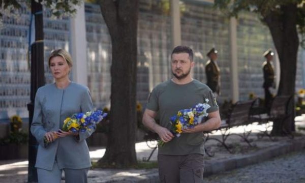 Dyshja vendosën lule të verdha dhe blu në Murin e Kujtesës së Mbrojtësve të rënë të Ukrainës në Kiev, për të shënuar Ditën e Pavarësisë së vendit. Në një fjalim, Zelensky u zotua të çlirojë të gjitha territoret e Ukrainës të pushtuara nga Rusia.