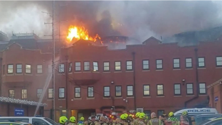 Rreth 175 zjarrfikës me 30 makina zjarrfikëse janë duke luftuar një zjarr të madh në një stacion policie në lindje të Londrës.