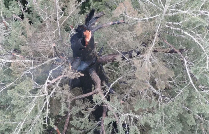Zyrtarët kanë dhënë opsione të pazakonta për të shuar zjarrin, përfshirë ndërtimin e skelave për të arritur dhe shuar flakët lart pishës.