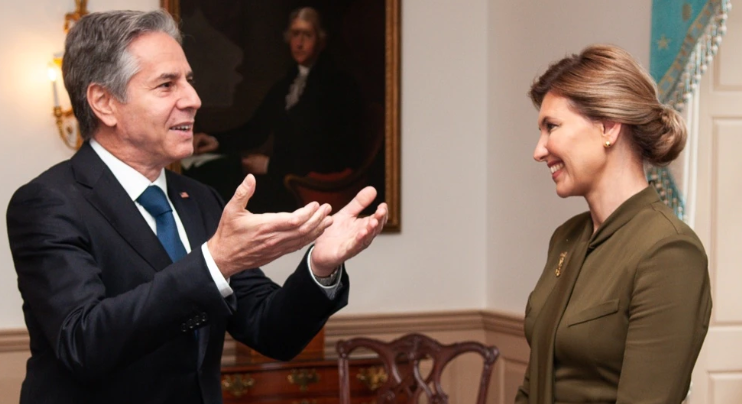 Zonja e Parë e Ukrainës, Olena Zelenska, u takua të hënën me Sekretarin e Shtetit Antony Blinken, ndërsa filloi një seri takimesh të nivelit të lartë në Uashington, përfshirë edhe një takim me Zonjën e Parë Jill Biden.