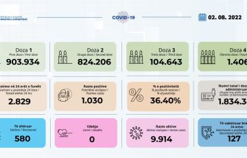 • Në tre ditët e kaluara janë regjistruar 1.171 raste të reja me COVID-19 në RMV