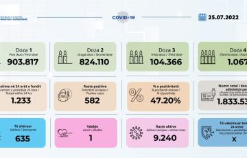 • Një i vdekur dhe 582 raste të reja me koronavirus